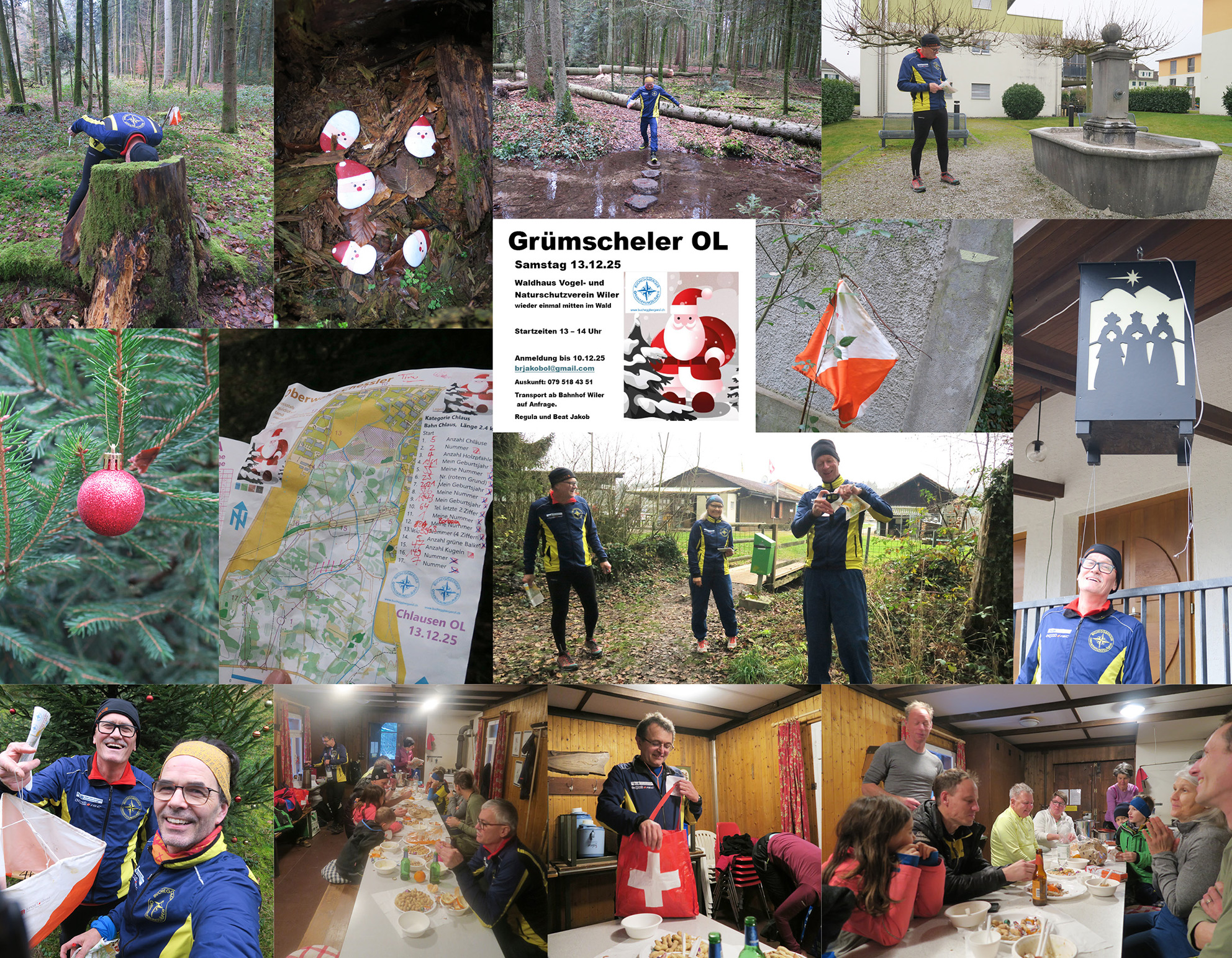 Zurück beim Waldhaus wurden wir von Jakobs mit warmer Suppe und Wienerlis, mit feinem Brot, Kuchen, Punsch, Bier und natürlich mit Nüssli, Schöggelis und Mandarindlis bewirtet. Zum Abschluss gab's natürlich noch die Grümscheler-Siegerehrung… gemäss der langjährigen Tradition ist die Auswertung und Gewichtung des erzielten Resultates strikt Sache der Organisation… und in diesem Jahr wurde das zuletzt im Waldhaus eingetroffene Läuferpaar – gemäss dem Motto: die Letzten werden die Ersten sein – zum Sieger erkoren: Herzliche Gratulation an Ädu + Trix zum Grümschelersieg 2026!