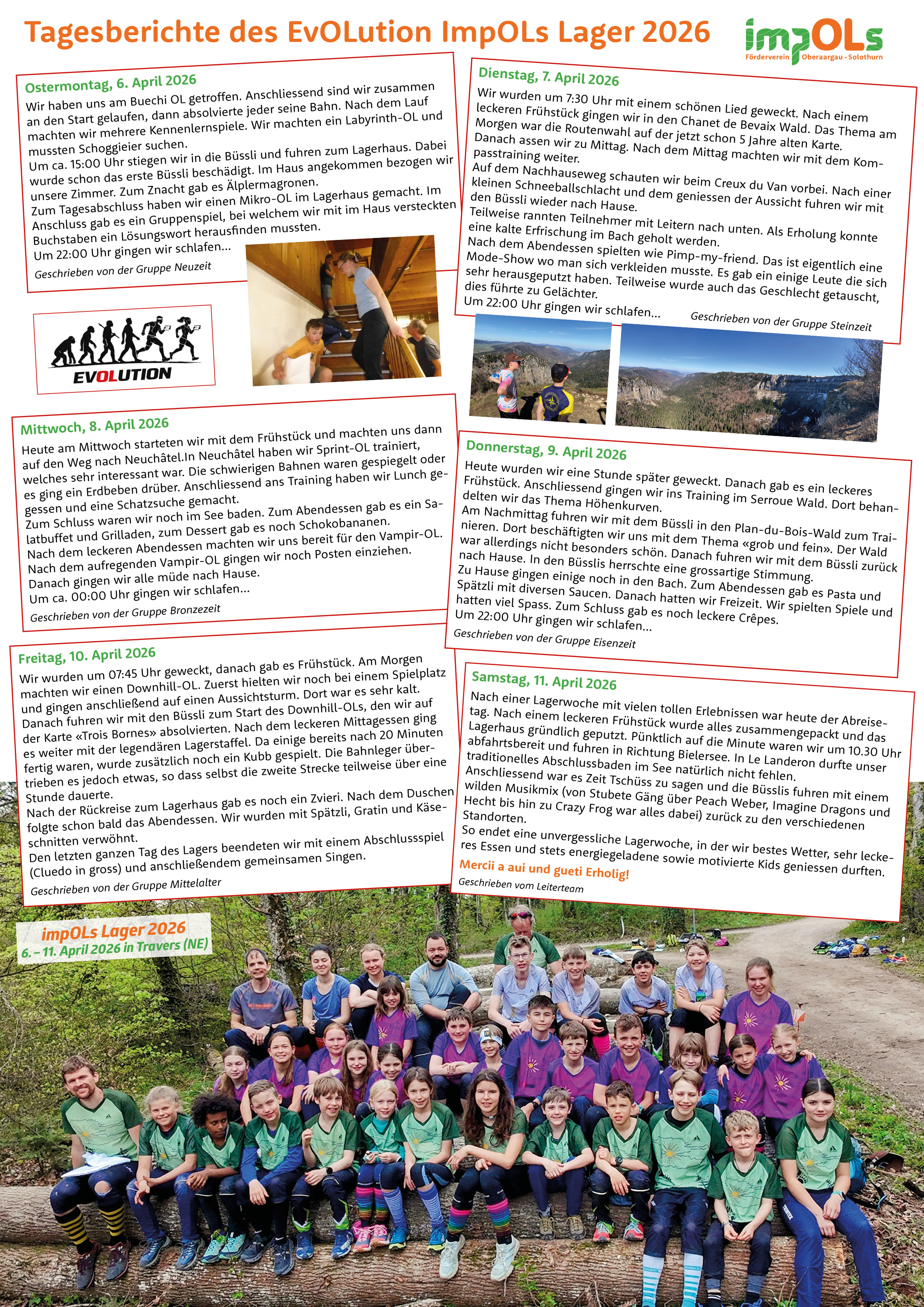 6. April 2026 Es hat alles gepasst… das Wetter, die MZH Lüterkofen als WKZ, das 5-Stern-OL-Beizli, das Grün im Wald (gerade noch ;o), die Bahnlegung und viele LäuferInnen (580!), die am Ostermontag zu unserem OL in den Bucheggberg gekommen sind! Und wenn alles so aufgeht wie in diesem Jahr, ist die Durchführung eines OLs zwar immer noch viel Arbeit, aber vor allem ein sehr schöner Lohn für die vielen Stunden der Vorbereitung. Wie gewohnt durften wir am Lauftag auf viele HelferInnen zählen, die durch ihr jahrelanges Mithelfen ihre Aufgaben im Griff hatten – Merci vielmal euch allen für euer grosses Engagement! Januar 2026 Mitte Januar erschien über Andy in der Solothurner Zeitung ein schöner Bericht zur Neuerstellung der Grenchener «Stadt-Sprint-OL-Karte» für den Biberister OL im Frühling 2026. Zusätzlich zu dieser Karte ist er zurzeit mit der Überarbeitung von unserer Lerchenberg-Ost Karte beschäftigt, die wir dann für unseren regionalen OL im April einsetzen werden. Dazu laufen auch schon die Vorbereitungen auf den BOL-2027 für den die Karte «Flüeli-Eggholz» komplett überarbeitet werden muss. Unterstützt wird Andy dabei wie gewohnt von unseren beiden anderen Kartenaufnehmern Adrian Gutknecht + Beat Jakob. Ein grosses Merci an diese drei, die mit viel Aufwand unsere OL-Karten aufnehmen + bearbeiten und uns so ermöglichen, dass wir immer TOP-Orientierungsläufe anbieten können! 13. Dezember 2025 Regula + Beat haben für den diesjährigen Grümscheler einen sehr schönen Platz gefunden… das Waldhaus des Vogel- und Naturschutzvereins Wiler: z'mitts im Wald + trotzdem gut erreichbar, die Temperatur draussen (jahreszeitengemäss) etwas «cool»… aber drinnen schön warm mit Holz geheizt! Sie schickten uns auf eine OL-Runde, die uns durch den Oberwald nach Gerlafingen und wieder zurück führte… dabei galt es immer wieder die richtige Nummer zu suchen und zu finden. Das waren z.B. Holztritte in einem Bach, Geburtsjahrzahlen von Brunnen und Sitzbänken, Hydrantennummern, Erdgasleitungsnummern oder als Höhepunkt… wieviele Christbaumkugelen an einer Tanne hängen! Und das waren einige… insgesamt 47 Stück! Zurück beim Waldhaus wurden wir von Jakobs mit warmer Suppe und Wienerlis, mit feinem Brot, Kuchen, Punsch, Bier und natürlich mit Nüssli, Schöggelis und Mandarindlis bewirtet. Zum Abschluss gab's natürlich noch die Grümscheler-Siegerehrung… gemäss der langjährigen Tradition ist die Auswertung und Gewichtung des erzielten Resultates strikt Sache der Organisation… und in diesem Jahr wurde das zuletzt im Waldhaus eingetroffene Läuferpaar – gemäss dem Motto: die Letzten werden die Ersten sein – zum Sieger erkoren: Herzliche Gratulation an Ädu + Trix zum Grümschelersieg 2026! Gratulieren möchten wir aber vor allem Regula + Beat für diesen sehr schönen Grümscheler-OL in diesem sehr schön von euch vorbereiteten Waldhaus! 4. + 5. Oktober 2025 Am ersten Oktober-Wochenende fanden in den Heinzenbergen im Graubünden die 2 letzten Nat. OLs in dieser Saison statt… mit einer Super-Leistung von Päscu! Hier die Berichte von Biit und Beat, die ebenfalls mit dabei waren: Beim Nat. Bündner-OL-Wochenende in den Heinzenbergen vom 4. & 5. Okt. waren auch Buechis dabei… und einer war nicht nur dabei, sondern drückte dem Anlass sogar richtig den Stempel auf: Päscu Schmutz nutzte seine super Herbstform für seine ersten beiden Siege bei Nat. OL’s in der Elitekategorie! Ausgangspunkt für beide Läufe war Thusis GR. Mit einem aufwändigen Transport mit Postautos gelangte man an beiden Tagen in neu erschlossenes traumhaftes alpines OL-Gelände. Den Veranstaltern gebührt ein grosses Dankeschön für den grossen Aufwand und den Mut in dieser Jahreszeit einen solchen OL-Leckerbissen in den Bergen anzubieten. Das Gelände in den Heinzenbergen – am Samstag gegen den Glasspass und am Sonntag unterhalb des Bischolapass – forderten von allen TeilnehmerInnen sowohl technisch wie auch physisch sehr vieles ab. Der Mitteldistanzlauf am Samstag bestand aus einem Startteil in offenem Gebiet und danach aus einem Geländewechsel in den Wald mit vielen Downhillpartien. Er fand bei schönstem Herbstwetter statt. Mit einem technischen einwandfreien Lauf lief Päscu zu seinem allerersten Elite-Kategorie-Sieg an einem Nat. Wettkampf und bewies damit, dass er nun definitiv in der Elitekategorie angekommen ist! Neben Päscu waren mit den Wittwer-Brothers Mätthu und Flöru, mit Beat und Jana Jakob, sowie mit Biit und Lia weitere Buechis am Start. Bei der Langdistanz am Sonntag kam neben den längeren Bahnen ein kleiner Wintereinbruch inkl. Schneegestöber als schwieriges Element hinzu. Ob die beiden Wittwer-Brothers den Schnee im Voraus schon schmeckten, ob sie weiter in die Ferien zogen oder ob sie am Sonntag einen Termin im Wankdorf hatten, bleibt dem Autor ungeklärt… Fakt ist, sie hatten am Samstagabend das Büssli schon wieder abgebaut und sind weitergefahren – aber es war cool beide an diesem OL zu treffen ;o) Glücklicherweise wurde es trotzdem nicht allzu kalt und windig, so dass einem besonderen OL-Leckerbissen in einem Traumgelände nichts im Weg stand. Mehrheitlich war das Gelände am Sonntag durch ein spannendes, feincoupiertes Relief in offenem Gebiet gekennzeichnet, bei dem man ständig den Kartenkontakt halten musste, um grössere Zeitverluste zu vermeiden. Nach seinem Husarenritt am Samstag zeigte Päscu auch am Sonntag beeindruckend, dass er dieses Gelände perfekt beherrscht und physisch auch über die Langdistanz aktuell eine super Verfassung aufweist. Er doppelte mit seinem zweiten Sieg am Wochenende nach. Auch wenn die allerbesten des Nationalkaders im Trainingslager für die nächste WM waren, zeugt diese Konstanz im Herbst, das Päscu aktuell auf einem sehr guten Weg ist. Die Chancen packen, wenn Sie sich bieten, ist gar nicht so einfach und das gleich zweimal, ist schon sehr beeindruckend! Ganz herzliche Gratulation Päscu von allen Bu