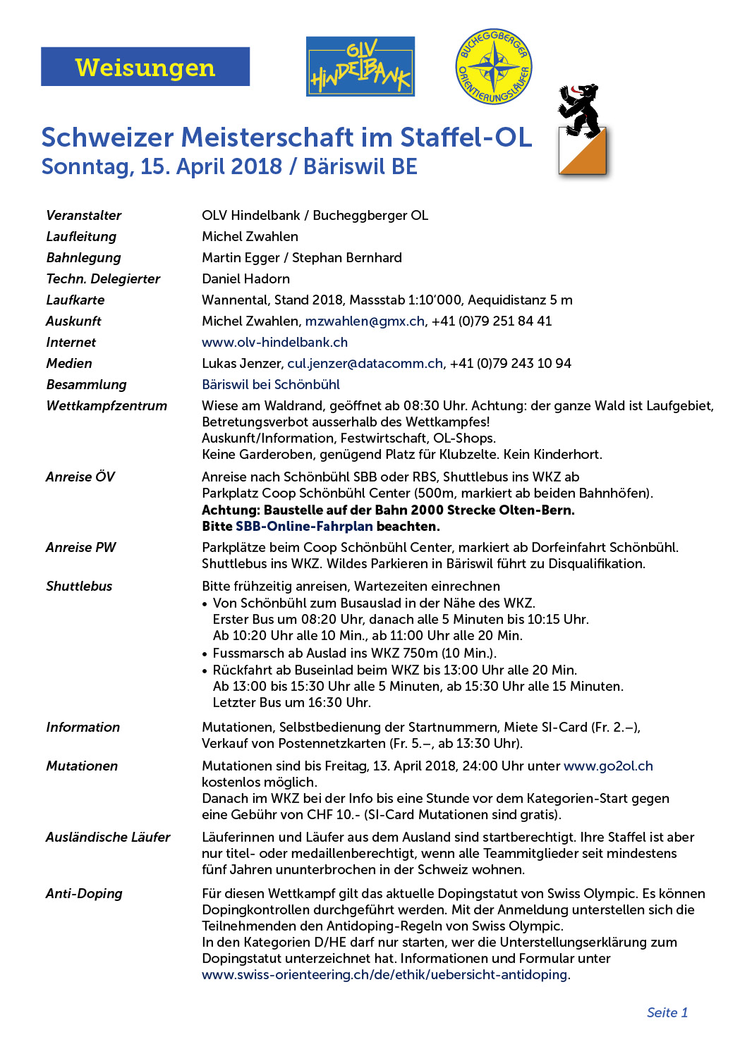 NEU: Weisungen DE (PDF) / SM im Staffel-OL / So. 15. April 2018 Bäriswil BE