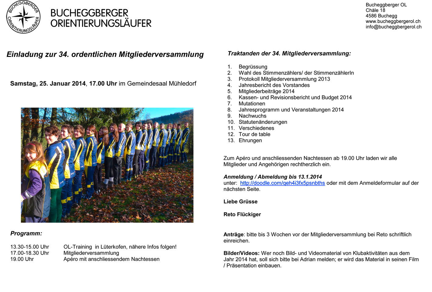 Herzliche Einladung zur 34. ordentlichen Mitgliederversammlung der Bucheggberger Orientierungsläufer