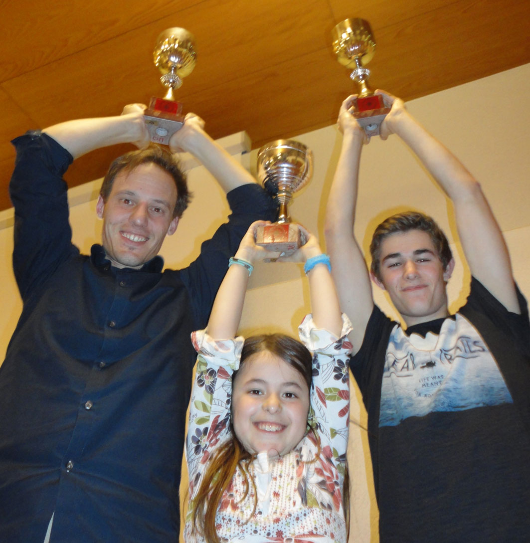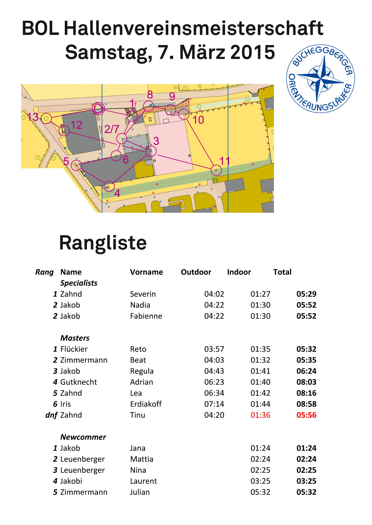 Und am Schluss nun zur Pokalübergabe: Es war Outdoor + Indoor ein Kampf um Sekunden. Die strahlenden Gewinner waren in der Kategorie Specalists: Seve Zahnd (zweite wurden Nadia + Fabienne mit der je exakt gleichen Zeit), in der Kategorie Masters: Reto Flückiger (nur hauchdünn vor Biit) und in der Kategorie Newcomer: Jana Jakob. Als Trophäe kriegten alle 3 einen Pokal (aus dem BOL-Archiv) überreicht. Und da diese Pokale Wanderpokale sind, muss es ja im nächsten Jahr zwingend eine Neuauflage der BOL Hallenvereinsmeisterschaft geben!