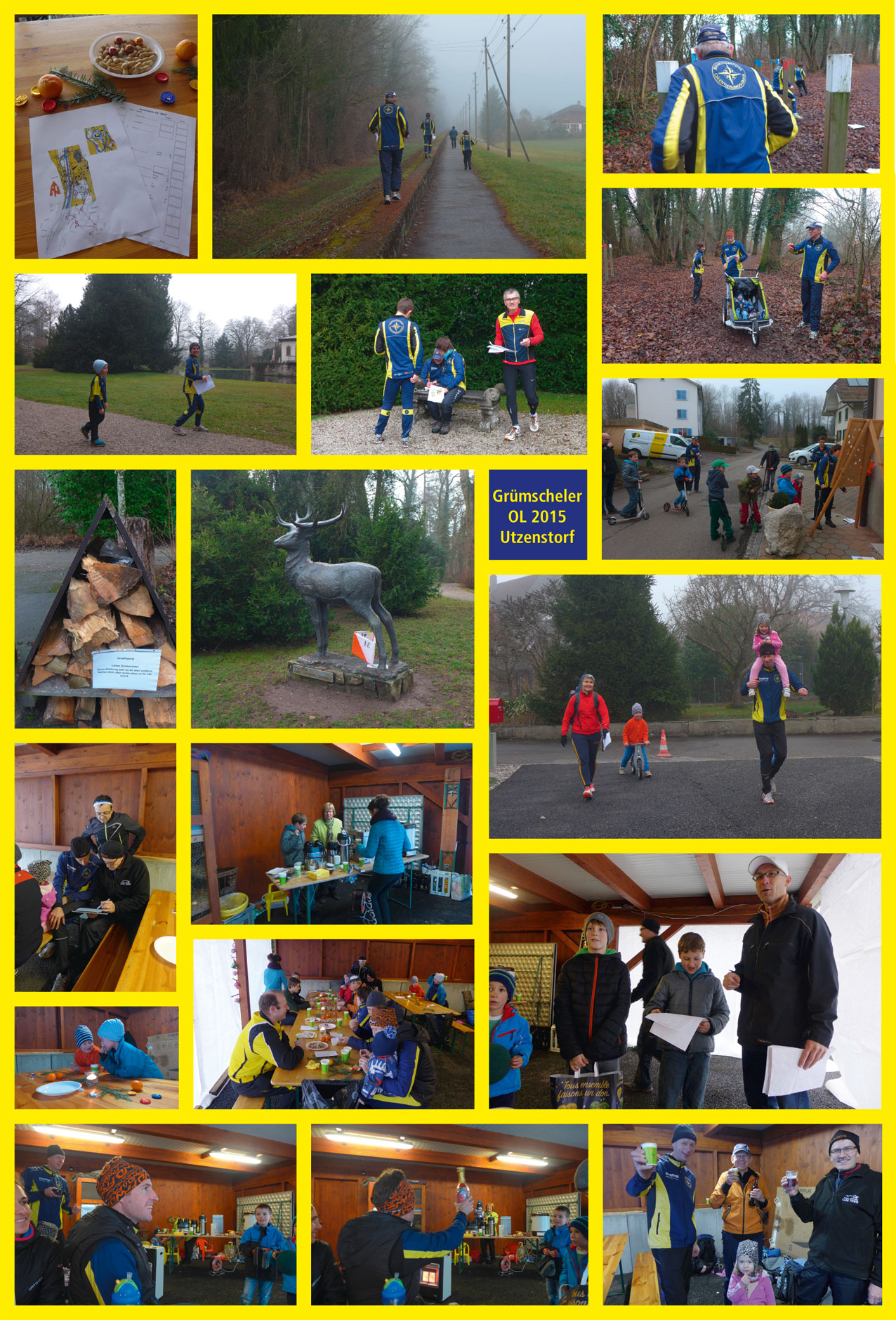 Die letztjährigen Grümscheler-Gewinner Mika + Levin (und Jürg) haben uns nach Utzenstorf zum Grümscheler-OL 2016 eingeladen. Sie haben uns auf eine, doch noch ziemlich lange OL-Reise durch ihr Dorf geschickt. Trotz Nebel konnten wir einige Sehenswürdigkeiten von Utzenstorf bewundern – mit dem Wasserschloss Landshut als klarem Höhepunkt. Dass man während dem Lauf noch mehr ins "Schnaufen" kam, lag (d.h. sofern man auch wirklich die hohe Stange nahm) an den 3 Vita-Parcours-Posten. Des weiteren musste ein Sudoku gelöst werden, ein Flussname erraten, das Alter einer Brücke bestimmt werden (was gar nicht so leicht war) und beim Schlussposten waren Geschicklichkeit und eine ruhige Hand gefragt. Als "Belohnung" wurden wir vom Organisations-Team mit Glühwein, Punsch, Tee, Würschtli + vielen Nüssli, Schöggeli + Mandarindli verwöhnt! Ein grosses Merci an euch für diesen coolen + gemütlichen Grümscheler-OL 2015!