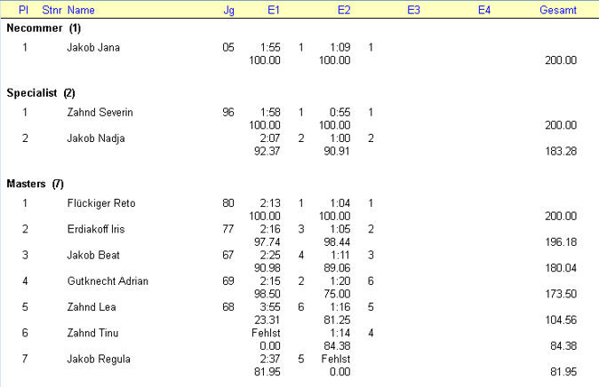 Etwas hab ich noch... die Rangliste unserer BOL-Hallen-Vereinsmeisterschaft: um es kurz zu machen... es gab nur Titelverteidigungen! Jana bei den Newcomern, Seve bei den Specalists und Reto bei den Masters. Gratulation!