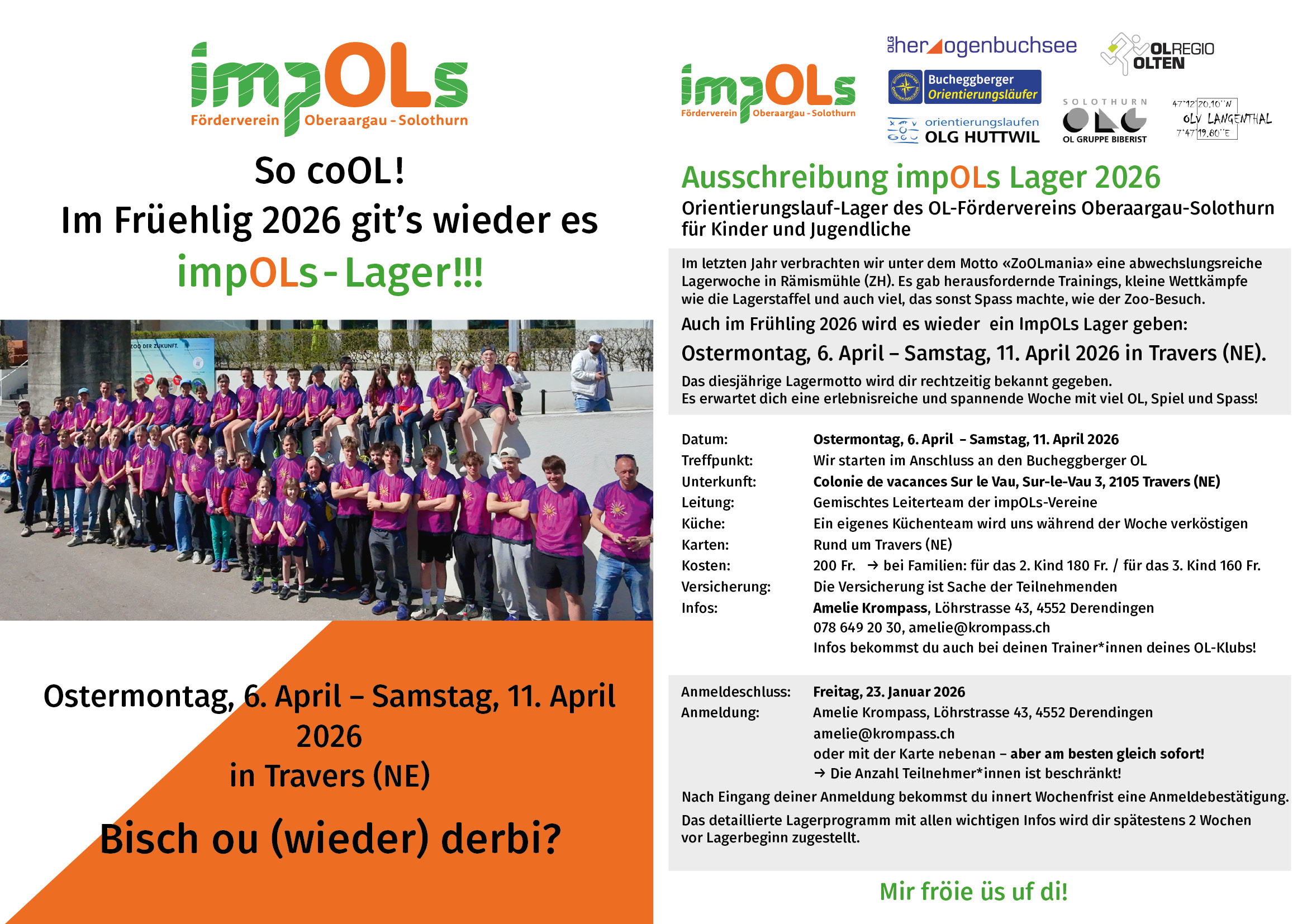 Liebe junge Buechis… wer schon einmal dabei war, weiss wie coOL die impOLs Lager sind… und wer noch nie dabei war, darf gerne bei Amelie nachfragen, was alles in dieser sportliche Lagerwoche läuft. Denn Amelie ist Teil des Leitungsteams und unter anderem zuständig für die Anmeldungen. «Es wär coOL, we ou du derbi bisch!»